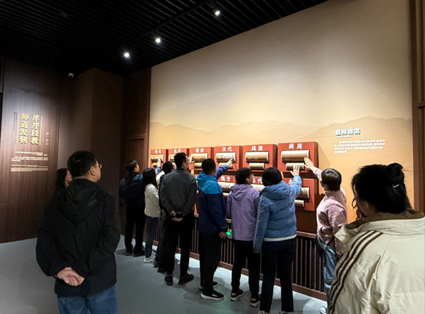 支部党员首先来到位于山东曲阜的中国教师博物馆,在讲解员的引导下先后参观了“教师的历史”“教师的摇篮”“教师的典范”三个展区。馆内生动展现了我国教育的发展脉络和百年师范院校发展史,从万世师表孔子到新时代人民教育家于漪等43位名师大家的事迹,全体党员深入了解了教师文化的传承,深刻体悟到中华民族尊师重教的优良传统。教师党员齐绩从“教”、“师”和“育”等汉字切入,深入浅出地分享了中国汉字的演变历程及蕴含的中华优秀传统文化。全体党员在感受到中华文化博大精深的同时,进一步增强了文化认同,坚定了文化自信。