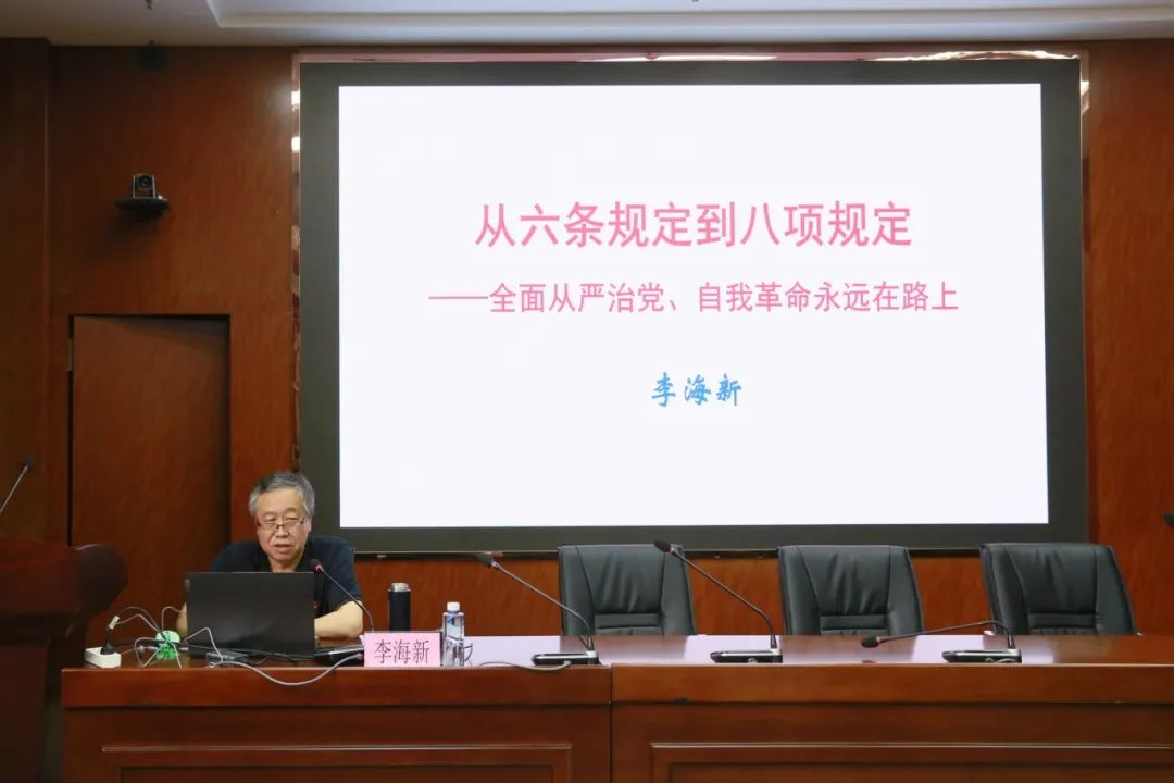 李海新教授为河北美术学院中层青年干部、党员作《从六条规定到八项规定——全面从严治党、自我革命永远在路上》专题讲座。他深入解读中央八项规定精神的核心要义与发展历程,通过剖析典型违纪案例,引导党员干部明纪律、知敬畏、守底线,将廉洁要求深刻内化于心,为在场师生带来了一场深刻的廉政思想洗礼。