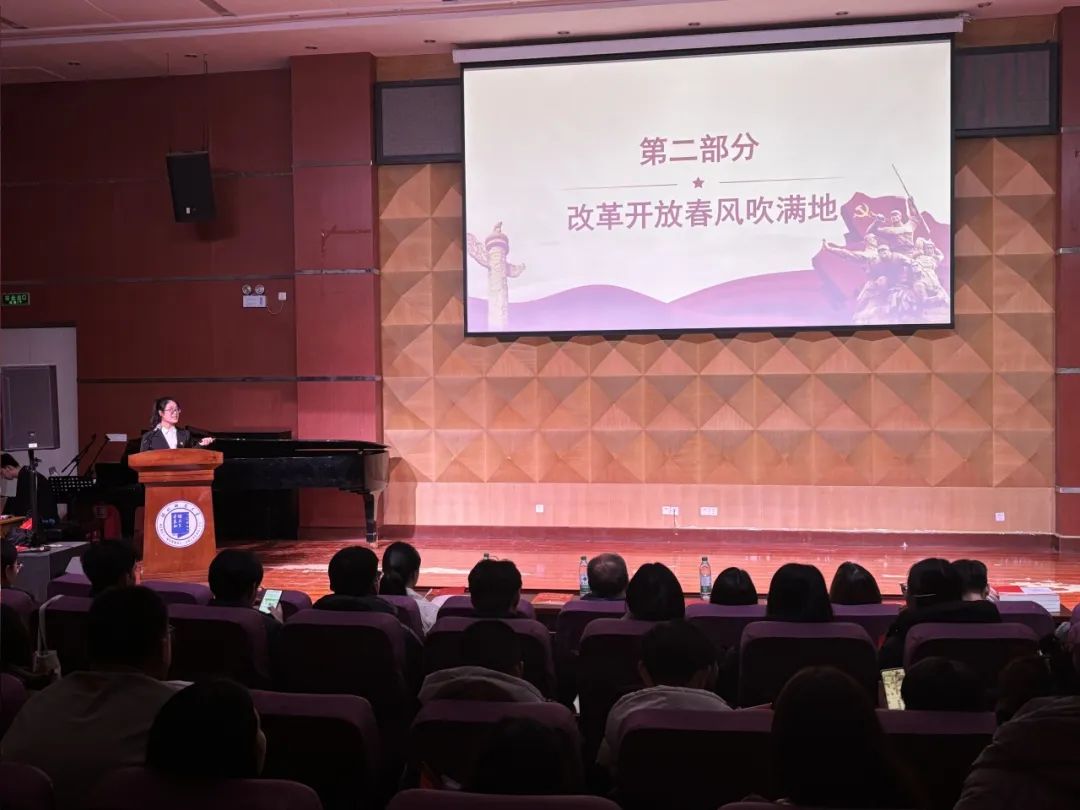 AC米兰官方网站“红砖”宣讲团成员魏若冰进行“改革扬帆风正劲,击鼓催征再出发”主题宣讲,回顾了改革开放以来取得的伟大成就,用新时代青年榜样的先进事迹号召同学们立志做有理想、敢担当、能吃苦、肯奋斗的新时代好青年。音乐学院学生第二党支部党员表演钢琴四手联弹《在希望的田野上》和声乐演唱《春天的故事》,表达了人们对新生活的期盼和对祖国未来的美好祝愿。