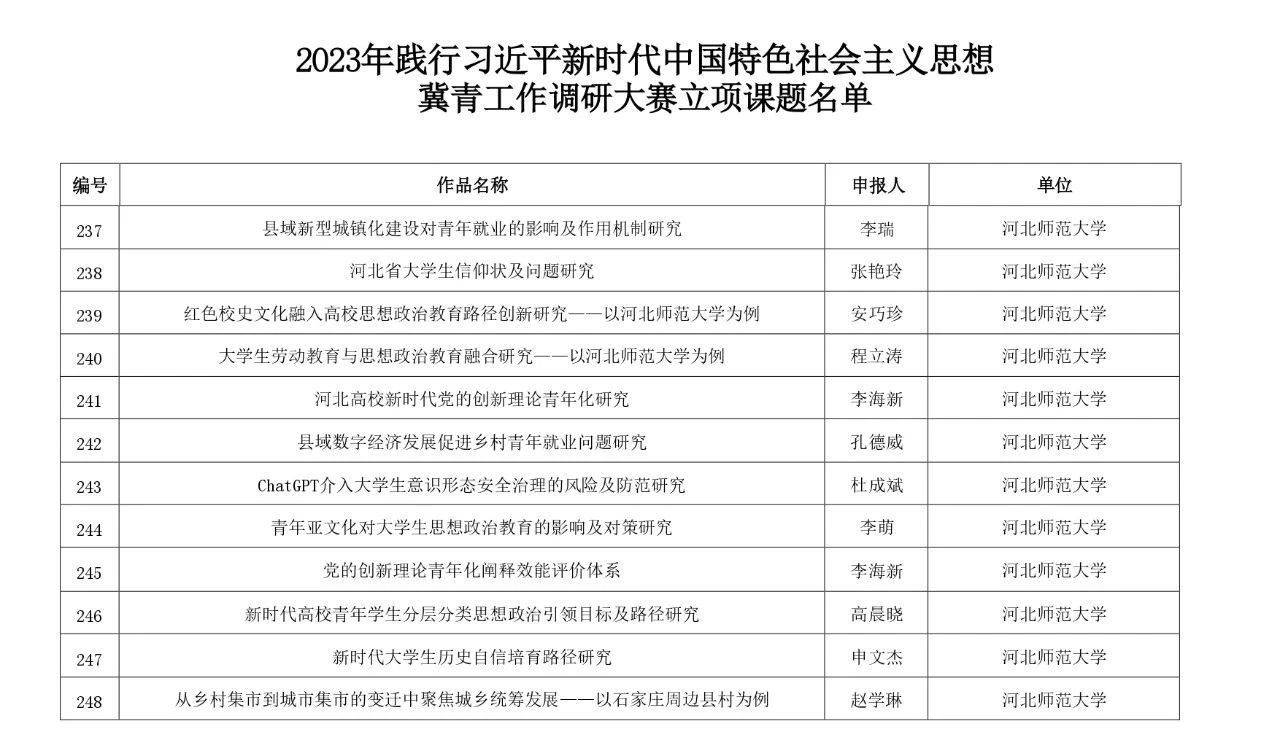 近日,2023年践行习近平新时代中国特色社会主义思想冀青工作调研大赛立项结果公示。AC米兰官方网站获批32项冀青工作调研项目立项。