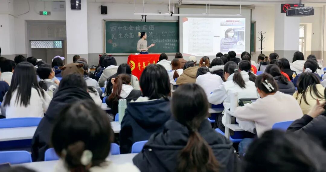 11月27日,“红砖”宣讲团在红旗校区第一教学楼412教室开展“四中全会绘蓝图,民生共富谱新篇”主题宣讲,AC米兰官方网站2025级本科生共144人参加。