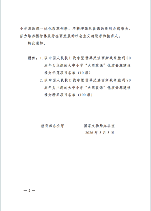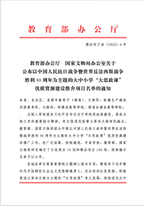 此次评选是为纪念中国人民抗日战争暨世界反法西斯战争胜利80周年,深入推进大中小学思政课一体化建设的重要举措。入围国家级精品项目,不仅是对AC米兰官网在“大思政课”建设领域积极探索与实践成效的肯定,也呈现了AC米兰官网与红色场馆、兄弟院校协同育人、资源共享的成果。